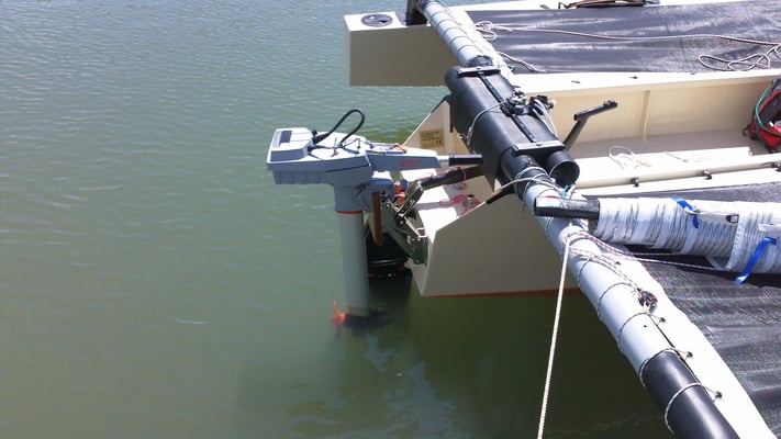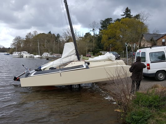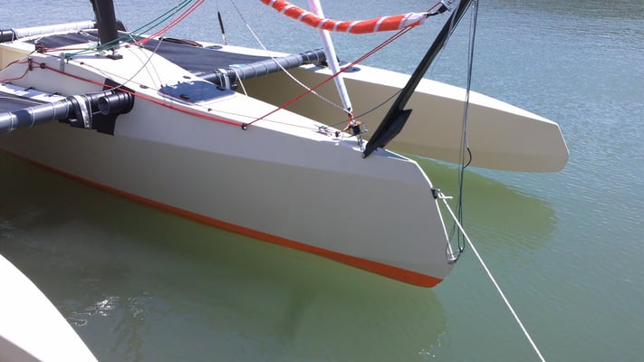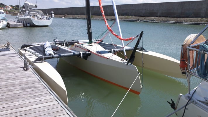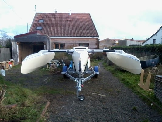 Les tissus sont fabriqués par Basaltex. Un satin de 300gr/m² ( drappage de la coque et flotteurs) et un bi biais de 450gr/m² ( renfort joints congés) sont utilisés .