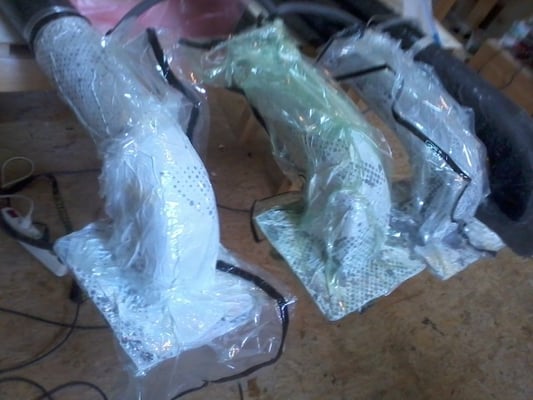 Des pièces plus ou moins complexes seront réalisées en stratification sous vide ( casque de safran, bôme, safran ...) .